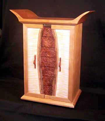 Cherry carcass with that lovely bookmatched live-edge Curly Maple