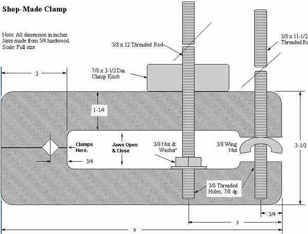 The plans I show yield an average-size clamp with jaws that can reach in about 5-1/2"