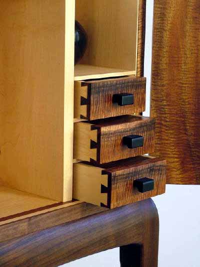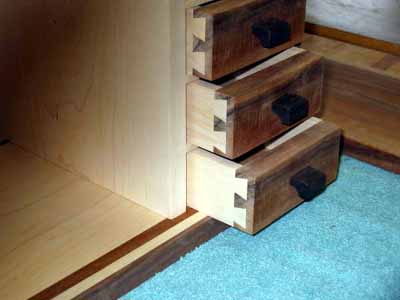 Drawers were made of 3/8" Maple with a solid 1/4" bottom.