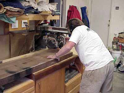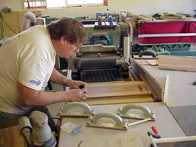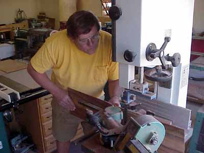 Note the mamu Laguna bandsaw equipped with a 1" carblde blade and a power feeder.