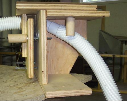 Side View... The knob on the Right... Q. Is there one on the other side? A. Yes Q. What does it do? A. The top slides for and aft to center the mortise on the work. The knobs tighten it in place Q. Does the Top slide left & right (as in the picture) and the knob tightens it down? A. You got it The knob set (2) on the Left... Q. Does the workpiece go between the knob and the ply as well as just inside of the ply panel in center? Q. Springs on the other side of the ply pushing to help hold the workpiece in place? A. The work piece goes against the main vertical frame and against the top. It gets clamped in by the pressure knobs. The springs hold the pressure piece out to simplify loading Q. Turn knobs counterclockwise to move the ply against the center panel? A. Yes Q. What is the maximum width of a workpiece? A. About 6" but you can also remove the knobs and use "C" clamps to hold wider work Q. What is the maximum thickness of a workpiece? A. About 2 1/8" Q. To make a mortise longer than the current slot, can you just slide the workpiece over and cut an extension? A. That would work Q. I guess you clamp it to a table/bench top? A. I clamp it to my cross cut table and slide the hoses into the RAS port. Leaves no mess Q. What are those carriage bolts used for? A. The bottom bolts hold the clamp board parallel to the work so it holds better Q. Do you have any drawings or sketches to make it clearer on dimensions and usage? A. No. I just designed as I went and if I thought of a better way I modified or remade Q. Do you have different patterns that are mounted somehow for different mortises? A. That's a good idea but I haven't had the need for any others yet ![]() ![]() This site is maintained by: Good-Lyddon Data Systems Copyright © 2004-2007 Joe Lyddon, WoodWorkStuff.net |