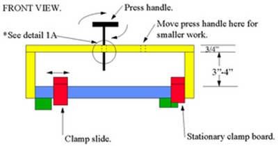 The board (next to the clamp handle) slides in a cut track under the