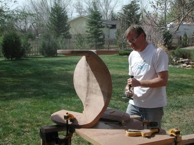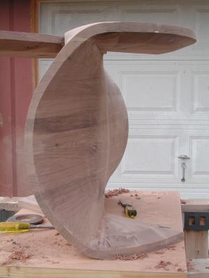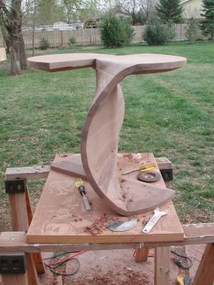 letting them be. KenCouch, 04-05-2004 12:32 AM Jeff I have been reading this forum for months and now I just had to register to say that you are an inventive and inspiring artist and your table is absolutly awesome. Wow! Ken Larry Norton, 04-05-2004 09:26 AM Hey, Jeff! I would never have expected it to come out like that! That's pretty slick! What kind of finish are you going to use? Uncle Fester WWAMDAUX#3 Hey Ken - welcome a board! Welcome home we've been waiting for you. Don't be nervous about posting project pics, we love 'em all. Tim Eastman tim eastman, 04-05-2004 10:14 AM Jeese Jeff I was wondering how you'd tackle that and how it would turn out. Thanks for showing us the pics - man did that ever turn out nice. What kind of finish are you using huh? huh? Tim Eastman Olepeddler, 04-05-2004 10:31 AM Wow, Jeff, I'm blown away. Didn't realize that that was what you had in mind. Lots a work, lots a dust, fabulous outcome. Joe T KenCouch, 04-05-2004 10:56 AM Tim Eastman Thank you very much. I probably will put a few pictures on here. Not that they will compare to what you guys and gals do. It's funny that you would be the first to welcome me "home" because I was born and raised in Grand Rapids. Jeff Your dining table & chairs are incredable too. Ken RickJ, 04-05-2004 12:12 PM Awesome job Jeff... keep up the great work. Ken ... nice to someone else from 'area' in the group ... welcome aboard !! Jeffj, 04-05-2004 05:30 PM I haven't even thought about the finish at this point. I'm taking this one step at a time. Any suggestions on finish are welcome. It was really pretty gratifying attacking the wood with the carver. I'm still fighting the demons of feeling guilty when I cut off the last couple of inches of a piece of wood, because I'm not using the entire piece. This project is so different from that, in that I am ending up with maybe half the volume of wood that I started with. When I began the shaping, I finished the first day with the spiral part much thicker than it is now. I had beveled the top as well the first day. We had some company over for dinner and I got impressions from them on what the shape looked like. My wife and the neighbors were in accord that the spiral had to be the same thickness as the top beveled edge (roughly 7/8"). So I went at it again on Sunday and thinned down the spiral. It was really a process of doing something, looking at it, noodling a bit and then doing a bit more. Because I kept taking off more and more wood, I was able to "fix" the mistakes I was making in the original hacking. I just kept working at it with finer and finer tools (the carver being the least fine, and the scraper being the most fine). At this point, I will be fiddling with the flow of the shape for the next 4 or 5 days until I feel that I can't get it any better. Then I'll worry about fixing the biscuits and how to finish it. Warning!!! Philosophical statements to follow: One of the principles guiding me in this comes from the Dave (either in Cairns or Knipfer) view: The shape was in the wood all along, I just had to find it. Each of the pieces in the spiral is different, they cut at different rates, have different grain patterns, shape differently and ultimately contribute to the whole. Each piece adds its own individuality to the completed structure. Hopefully I've extracted some of that individuality. Jeff Joe Lyddon, 04-05-2004 07:45 PM Jeff, this is interesting... I have been thinking of doing something like that with scraps as they become available. Even with cabinet grade & baltic plywood! I think the laminates would be interesting. I was thinking of just starting to glue the pieces together as it happened, twisting and turning per the feeling at the moment. Have you ever done that... or have you always somewhat 'planned' it out? What kind of glue do you use? It looks like you use a grinder... I was going to attack it with a rasp, etc. and go from there. That's a beautiful piece! What are you going to use it for? Pictures, lamp, plants, etc.? Thank you for sharing & have FUN, Joe Joe Lyddon, 04-05-2004 07:49 PM KenCouch, W E L C O M E . . A B O A R D !! I'm sure glad Jeff drew you in from the woodwork! Have FUN! Joe Links: The Plans ![]() ![]() This site is maintained by: Good-Lyddon Data Systems Copyright © 2004-2010 Joe Lyddon, WoodWorkStuff.net |